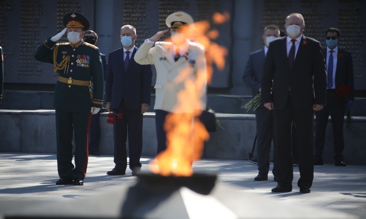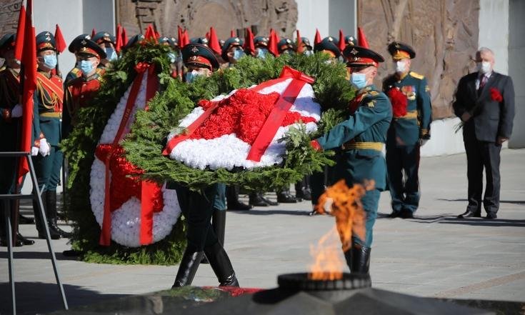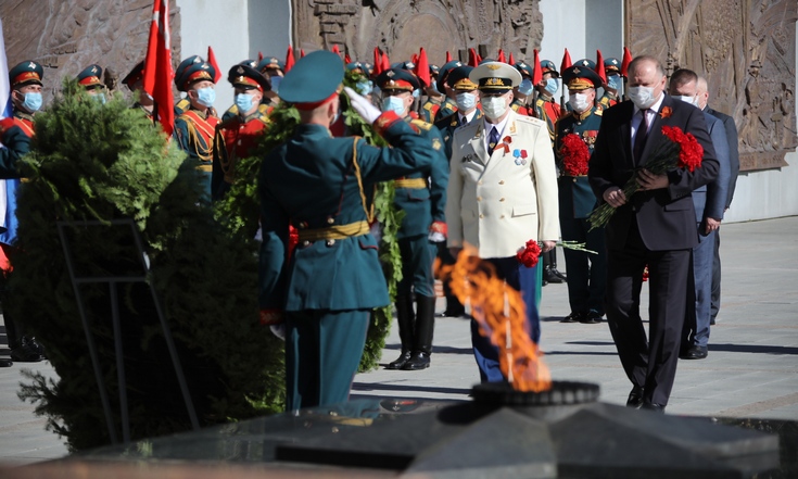 На Широкореченском военно-мемориальном комплексе состоялась церемония возложения венков и цветов к Вечному огню.