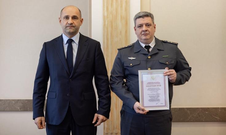 Также полпред вручил Благодарственные письма сотрудникам Межрегионального территориального управления Ространснадзора по Уральскому федеральному округу: заместителю начальника отдела надзора за обеспечением транспортной безопасности Валентину Александровичу Костовскому и начальнику отдела надзора в сфере использования воздушного пространства и аэронавигационного обслуживания Алексею Геннадьевичу Новоселову.