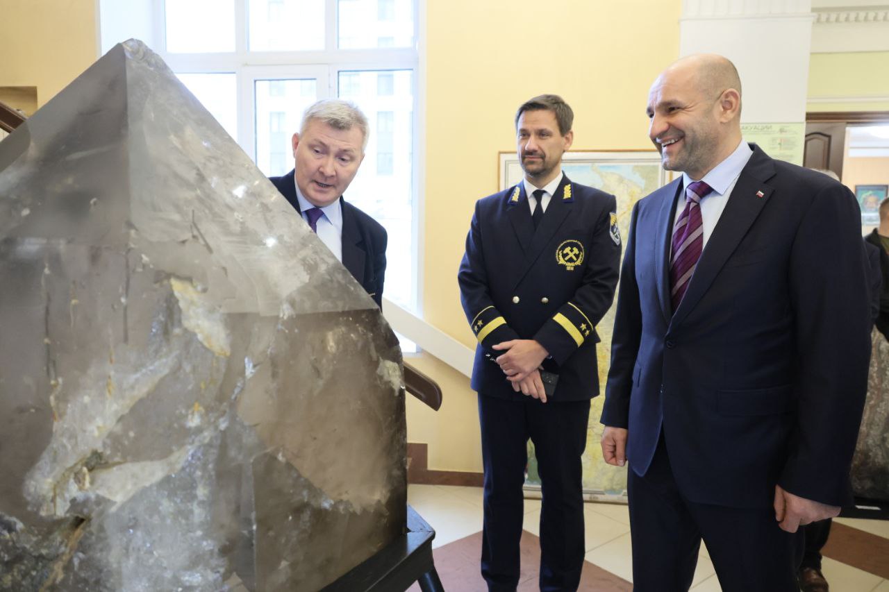 Также Артём Жога осмотрел экспозицию, представленную в Геологическом музее Уральского горного университета.