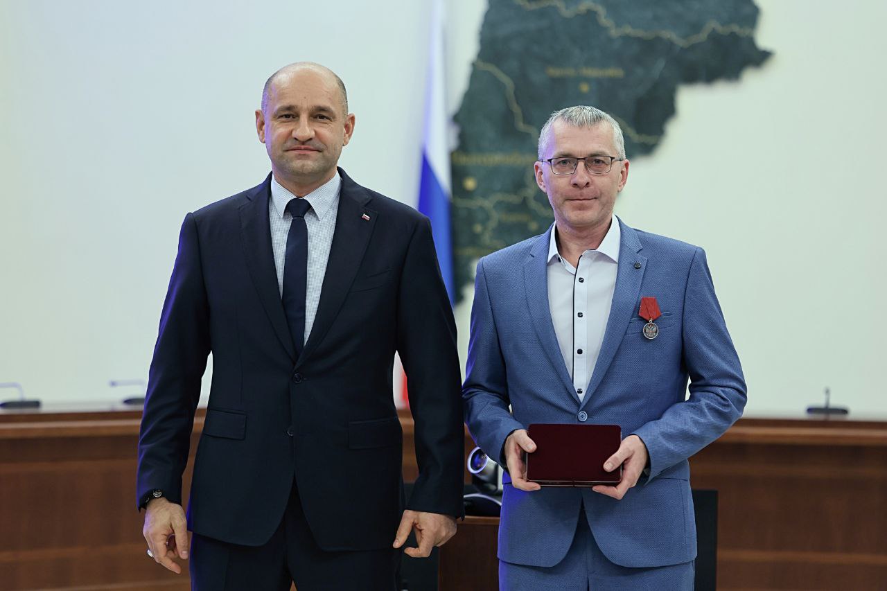 Артём Жога поблагодарил работников предприятий за добросовестную работу и вручил награды - медали ордена «За заслуги перед Отечеством» I и II степени.