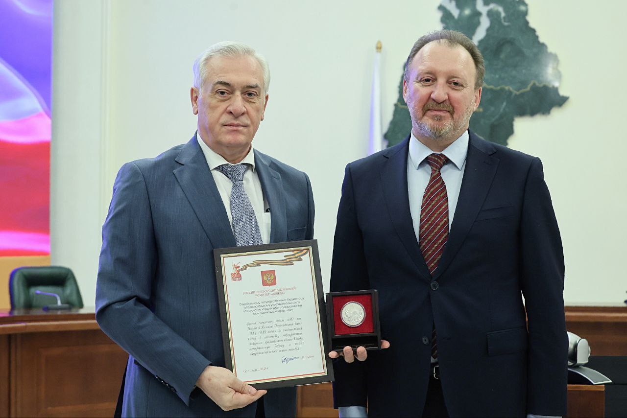 Заместитель полпреда вручил памятные медали «80 лет Победы в Великой Отечественной войне 1941-1945 годов» 10 жителям и организациям Свердловской области, в их числе представители общественных организаций, сферы культуры, образования и органов власти.