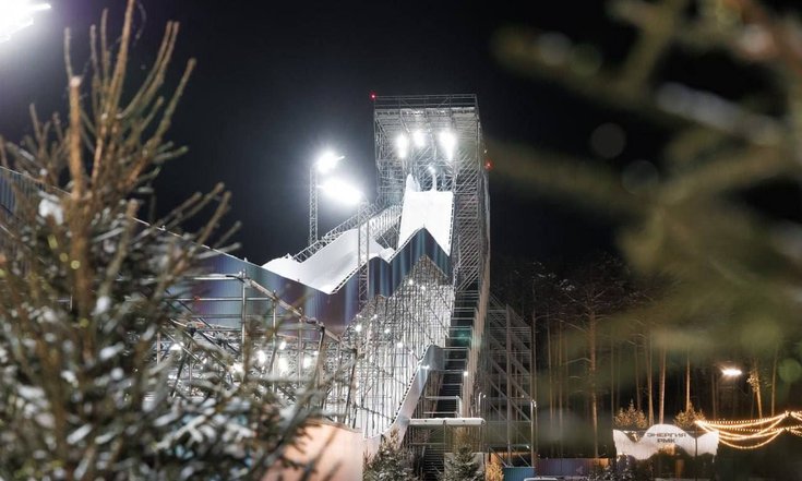Площадкой для большого зимнего праздника стал квартал «Архангел Михаил». На ней расположены большой каток, склоны для сноубордистов, прогулочные и игровые зоны, а также огромная двухуровневая горка высотой 24 и 17 м.