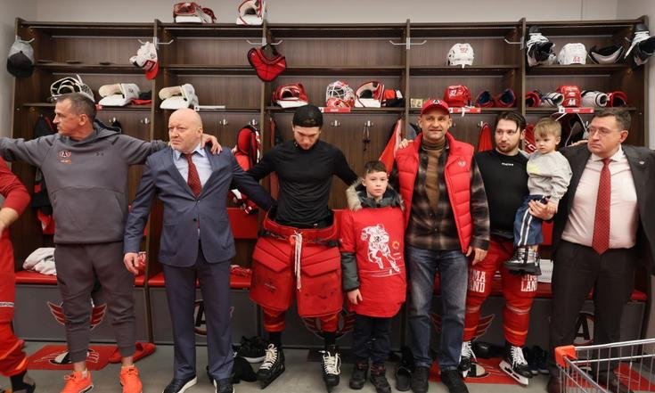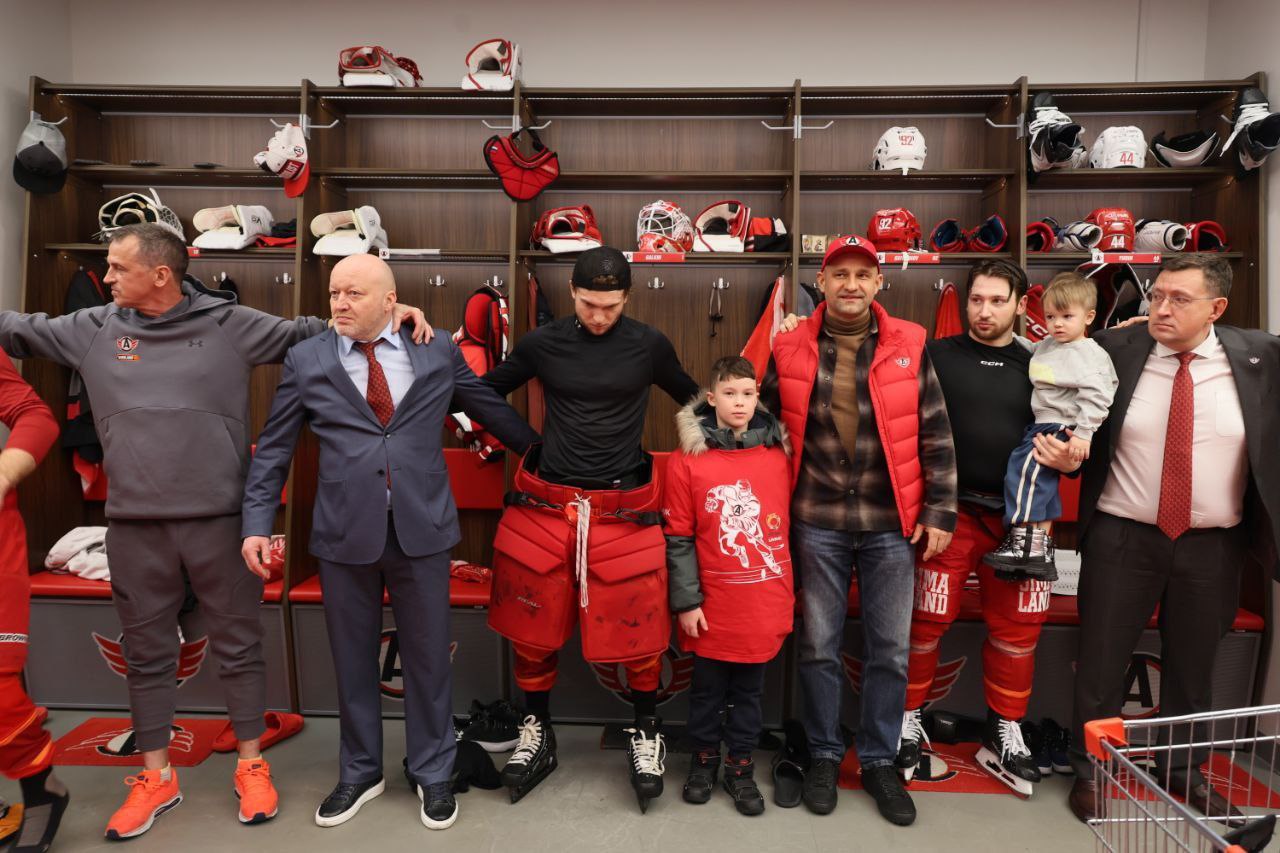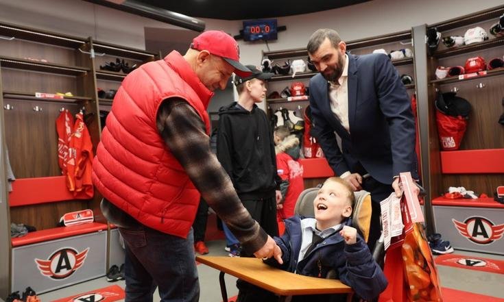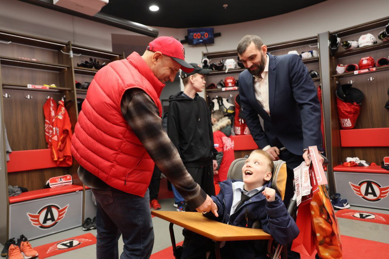 После игры полпред Артём Жога и дети посетили раздевалку, где познакомились с игроками «Автомобилиста» и поздравили их с победой.