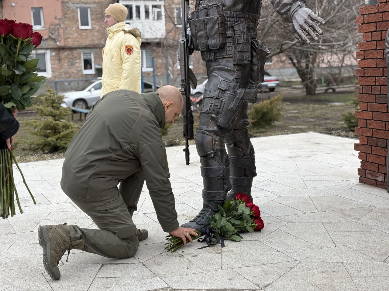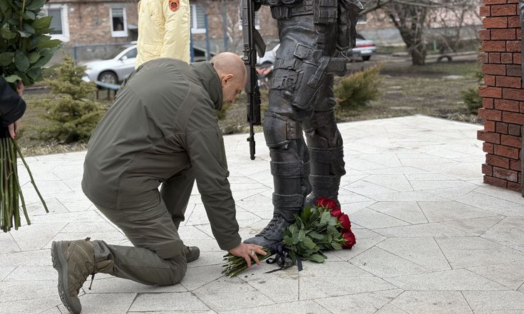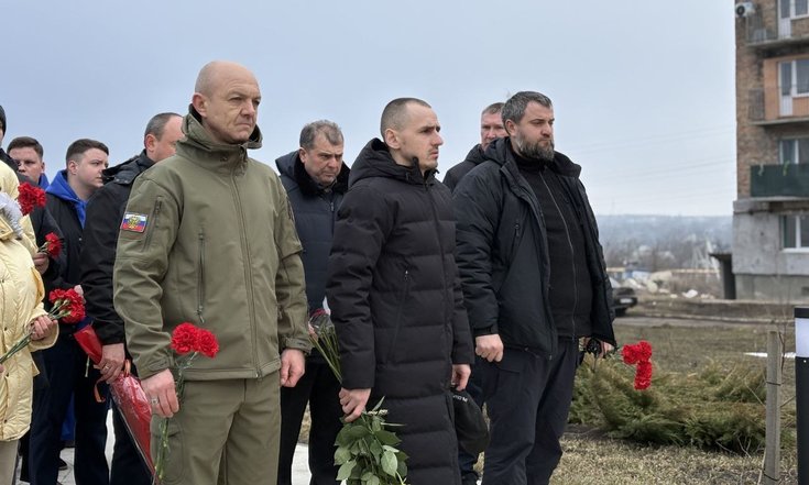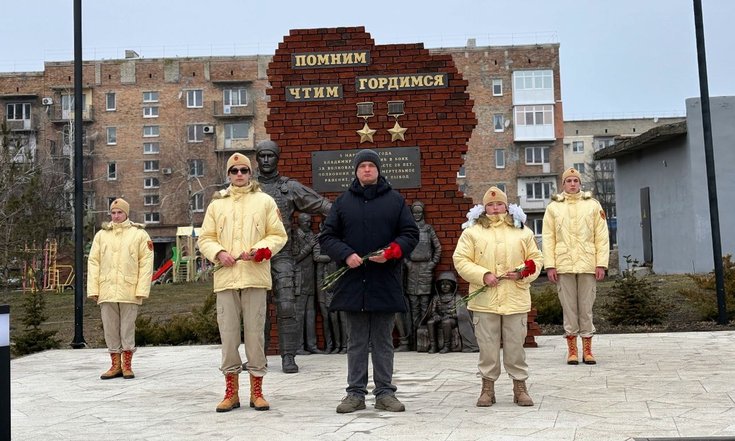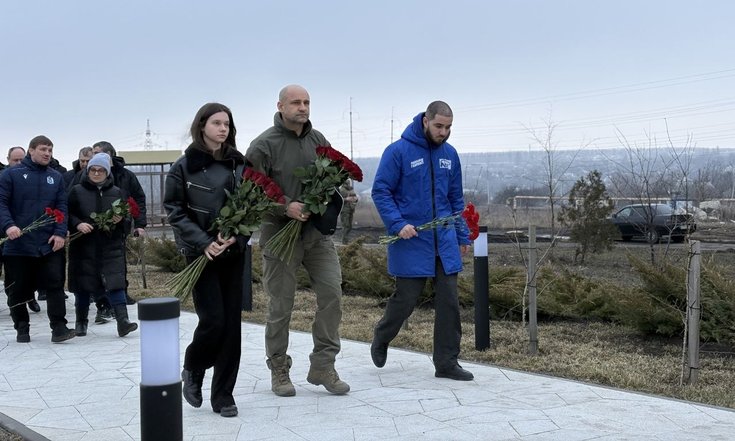 В Волновахе он возложил цветы к памятнику Герою ДНР и Герою России, командиру батальона «Спарта» Владимиру Жоге, который погиб 5 марта 2022 года, обеспечивая эвакуацию мирных жителей города.