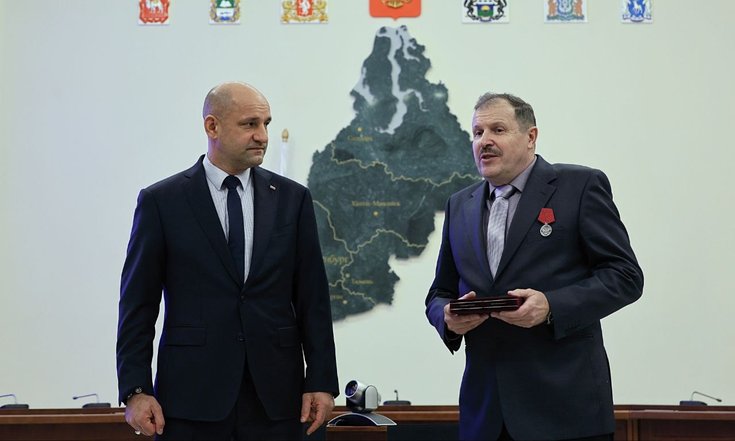 Артём Жога поблагодарил работников предприятий за добросовестную работу и вручил награды - медали ордена «За заслуги перед Отечеством» I и II степени.