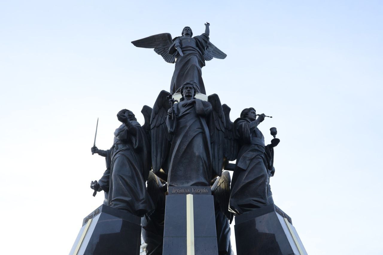 Скульптурная композиция «Собор Архистратига Михаила» — это первый в России памятник, посвященный всем Архангелам. Высота монумента составляет почти 17 метров. Скульптура представляет собой постамент в граните и группу из бронзы: семь Архангелов, стоящих на пьедесталах, образуют кольцо, держа на крыльях позолоченный шар – символ мироздания. Над ним возвышается фигура Архангела Михаила, предводителя Небесного воинства, сокрушающего зло.