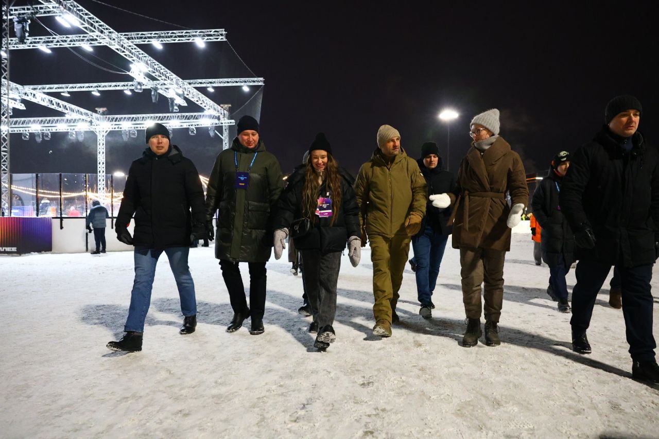 Площадкой для большого зимнего праздника стал квартал «Архангел Михаил». На ней расположены большой каток, склоны для сноубордистов, прогулочные и игровые зоны, а также огромная двухуровневая горка высотой 24 и 17 м.