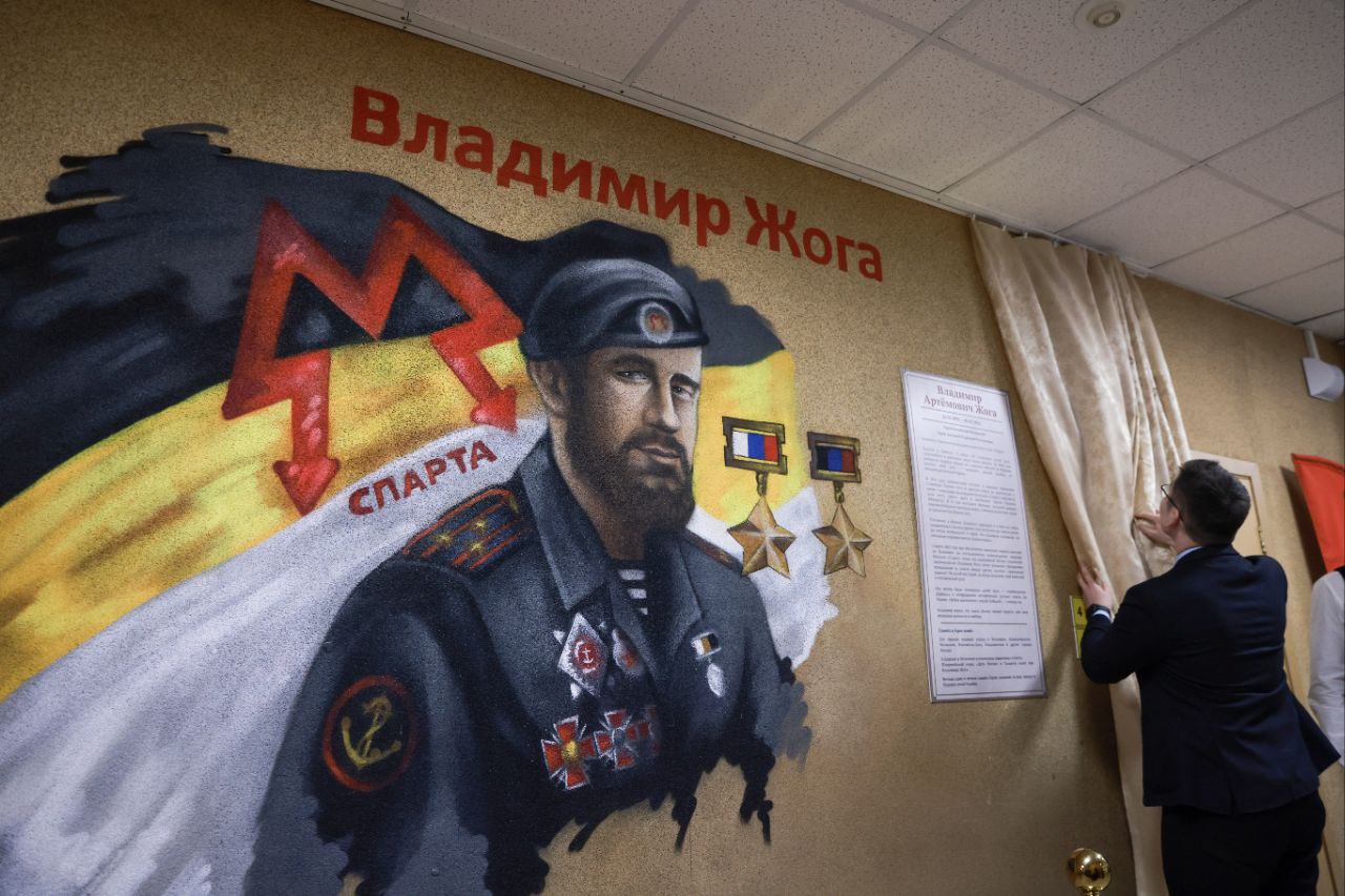 Мурал расположен напротив главного входа в гимназию. Портрет нарисован на средства, заработанные детьми во время благотворительной ярмарки, где ребята продавали поделки, сделанные своими руками. В прошлом году одному из классов гимназии было присвоено имя Владимира Жоги. Также школьники на вырученные средства покупали дроны для участников СВО.