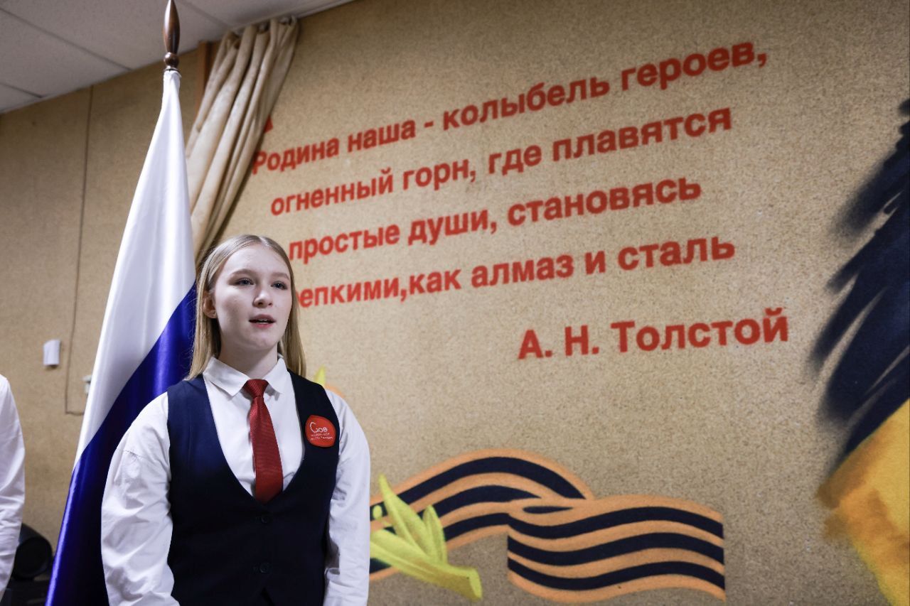 Участие в церемонии приняли ученики гимназии, а также ребята, чьи отцы сейчас находятся в зоне проведения специальной военной операции.