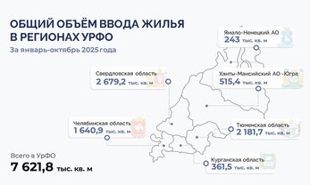 За 10 месяцев 2025 года в УрФО введено 7,6 млн кв. м жилья
